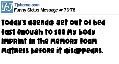 X says Today's agenda: get out of bed fast enough to see my body imprint in the memory foam matress before it disappears.