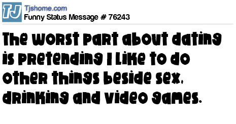 - # 76261 The worst part about dating is pretending I like to do other things beside sex, drinking and watch sports on t.v..!!