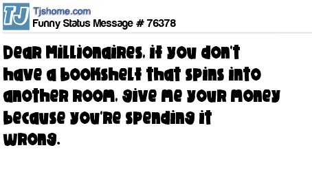 - # 76653 Dear Millionaires, if you don't have a bookshelf that spins into another room, give me your money because you're spending it wrong.