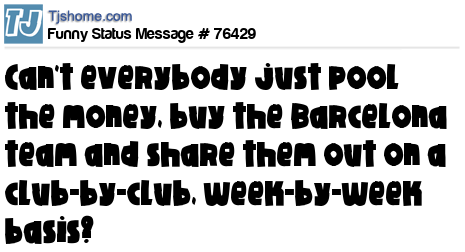 X is Can't everybody just pool the money, buy the Barcelona team and share them out on a club-by-club, week-by-week basis?
