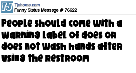 X  People should come with a warning label of does or does not wash hands after using the restroom