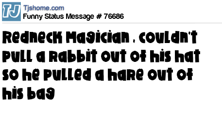 X is Redneck Magician , couldn't pull a rabbit out of his hat so he pulled a hare out of his bag