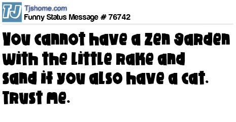X You cannot have a Zen garden with the little rake and sand if you also have a cat. Trust me.