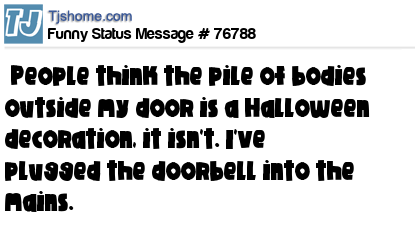 X is People think the pile of bodies outside my door is a Halloween decoration, it isn't. I've plugged the doorbell into the mains.