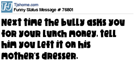 - # 119463 To this day, the boy that used to bully me at school still takes my lunch money. On the plus side, he makes great subway sandwiches.