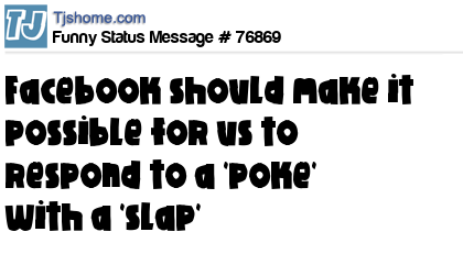 - # 76855 Maybe its just me but The 'poke' button on Facebook should be replaced with a 'slap' button.
