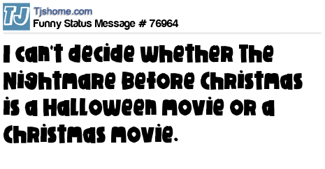 X is I can't decide whether The Nightmare Before Christmas is a Halloween movie or a Christmas movie.
