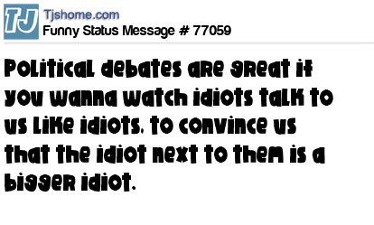 X Political debates are great if you wanna watch idiots talk to us like idiots, to convince us that the idiot next to them is a bigger idiot.