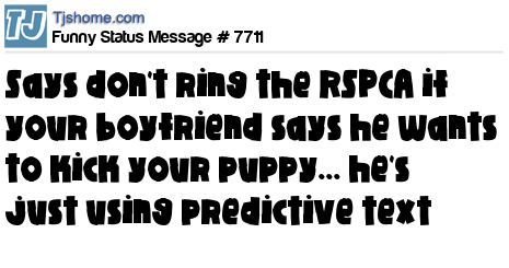 - # 21863 don't call the RSPCA if your boyfriend sends you the text 'i want to kick your puppy'......he's just using predictive text
