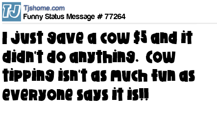 X I just gave a cow $5 and it didn't do anything. Cow tipping isn't as much fun as everyone says it is!!