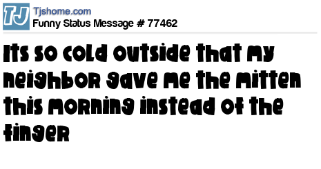 - # 45847 You know it's cold outside when during rush hour you get the mitten instead of the finger.