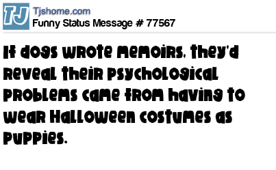 - # 77588 If dogs wrote memoirs, they'd reveal their psychological problems came from having to wear Halloween costumes as puppies.