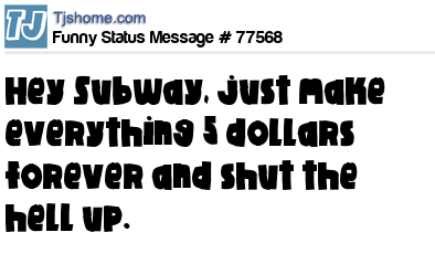 X says Hey Subway, just make everything 5 dollars forever and shut the hell up.