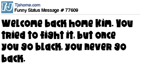 X says Welcome back home Kim. You tried to fight it, but once you go black, you never go back.