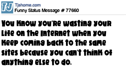X You know you're wasting your life on the Internet when you keep coming back to the same sites because you can't think of anything else to do.