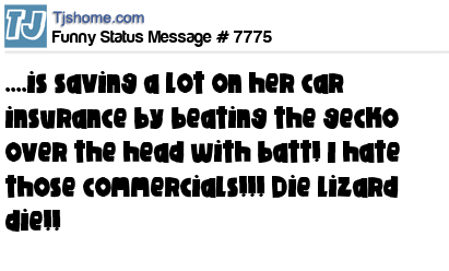 X is ....is saving a lot on her car insurance by beating the gecko over the head with batt! I hate those commercials!!! Die lizard die!!
