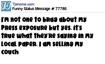 X is I'm not one to brag about my Press exposure but yes, it's true what they're saying in my local paper. I am selling my couch