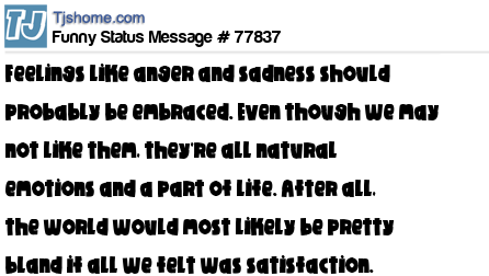 X  Feelings like anger and sadness should probably be embraced. Even though we may not like them, they're all natural emotions and a part of life. After all, the world would most likely be pretty bland if all we felt was satisfaction.