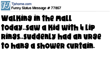 X walking in the mall today..saw a kid with 4 lip rings..suddenly had an urge to hang a shower curtain.