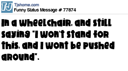 X is in a wheelchair, and still saying "I won't stand for this, and I wont be pushed around".