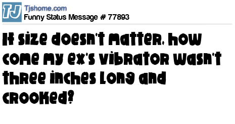 X is If size doesn't matter, how come my ex's vibrator wasn't three inches long and crooked?