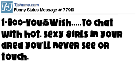 X  1-800-You~Wish.....To chat with hot, sexy girls in your area you'll never see or touch.