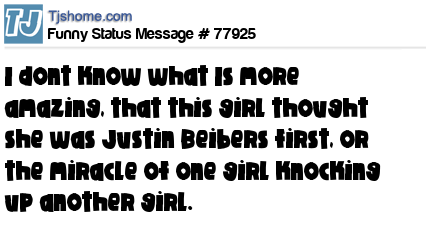 X is I dont know what Is more amazing, that this girl thought she was Justin Beibers first, or the miracle of one girl knocking up another girl.