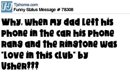 X Why, when my dad left his phone in the car his phone rang and the ringtone was "Love in this club" by Usher???