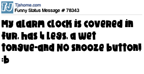 X my alarm clock is covered in fur, has 4 legs, a wet tongue-and NO snooze button! :b
