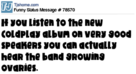 X If you listen to the new Coldplay album on very good speakers you can actually hear the band growing ovaries.