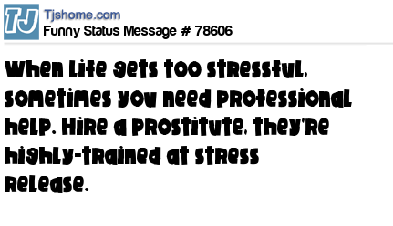 X says When life gets too stressful, sometimes you need professional help. Hire a prostitute, they're highly-trained at stress release.