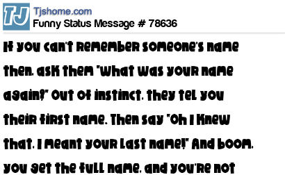 - # 33114 When you don't remember someones name, you wait for someone else to say it so you can pretend like you knew it all along.