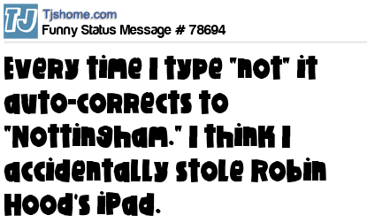 X Every time I type "not" it auto-corrects to "Nottingham." I think I accidentally stole Robin Hood's iPad.