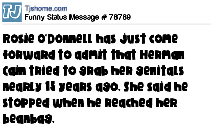X  Rosie O'Donnell has just come forward to admit that Herman Cain tried to grab her genitals nearly 15 years ago. She said he stopped when he reached her beanbag.