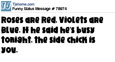 X says Roses are Red, Violets are Blue. If he said he's busy tonight, the side chick is you.