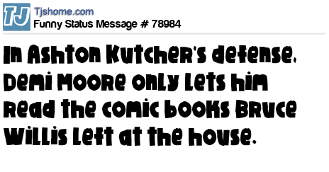 X In Ashton Kutcher's defense, Demi Moore only lets him read the comic books Bruce Willis left at the house.