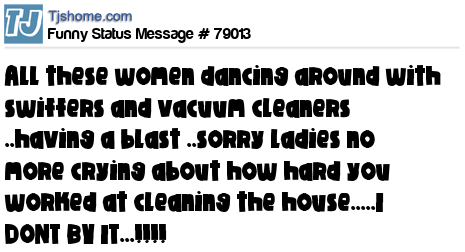 X All these women dancing around with swiffers and vacuum cleaners ..having a blast ..sorry ladies no more crying about how hard you worked at cleaning the house.....I DONT BY IT...!!!!