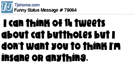 X I can think of 14 tweets about cat buttholes but I don't want you to think I'm insane or anything.