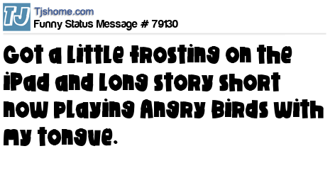 X Got a little frosting on the iPad and long story short now playing Angry Birds with my tongue.