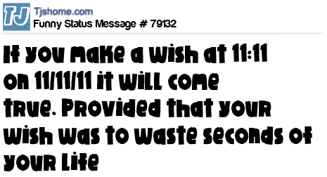 X says If you make a wish at 11:11 on 11/11/11 it will come true. Provided that your wish was to waste seconds of your life