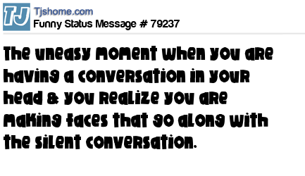 X says The uneasy moment when you are having a conversation in your head & you realize you are making faces that go along with the silent conversation.