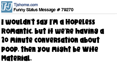 X says I wouldn't say I'm a Hopeless Romantic, but if we're having a 20 minute conversation about poop, then you might be Wife Material.