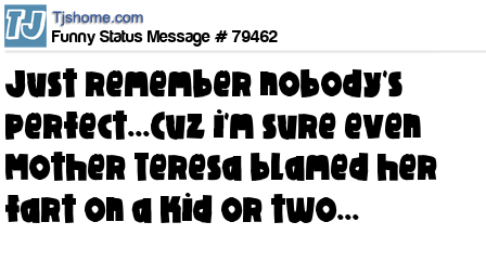 X says Just remember nobody's perfect...Cuz i'm sure even Mother Teresa blamed her fart on a kid or two...