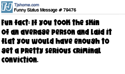 - # 172717 FUN FACT: if you took the skin of an average person and laid it out flat,you would have enough for a serious criminal conviction :)