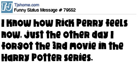 X says I know how Rick Perry feels now, just the other day I forgot the 3rd movie in the Harry Potter series.