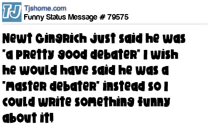 X says Newt Gingrich just said he was "a pretty good debater" I wish he would have said he was a "master debater" instead so I could write something funny about it!