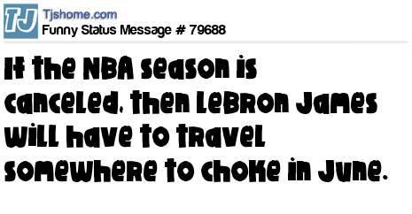 X says If the NBA season is canceled, then LeBron James will have to travel somewhere to choke in June.