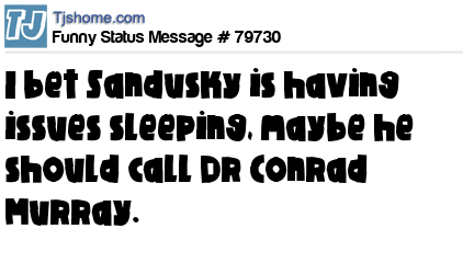 X is I bet Sandusky is having issues sleeping, maybe he should call Dr Conrad Murray.