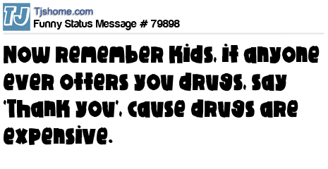 - # 58711 Remember: When strangers offer you drugs, take them, because drugs are expensive!!