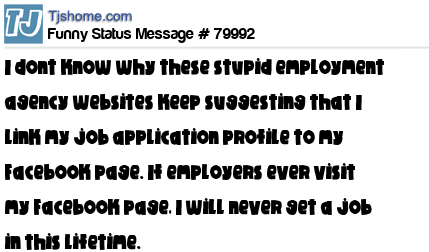 X says I dont know why these stupid employment agency websites keep suggesting that I link my job application profile to my Facebook page. If employers ever visit my Facebook page, I will never get a job in this lifetime.